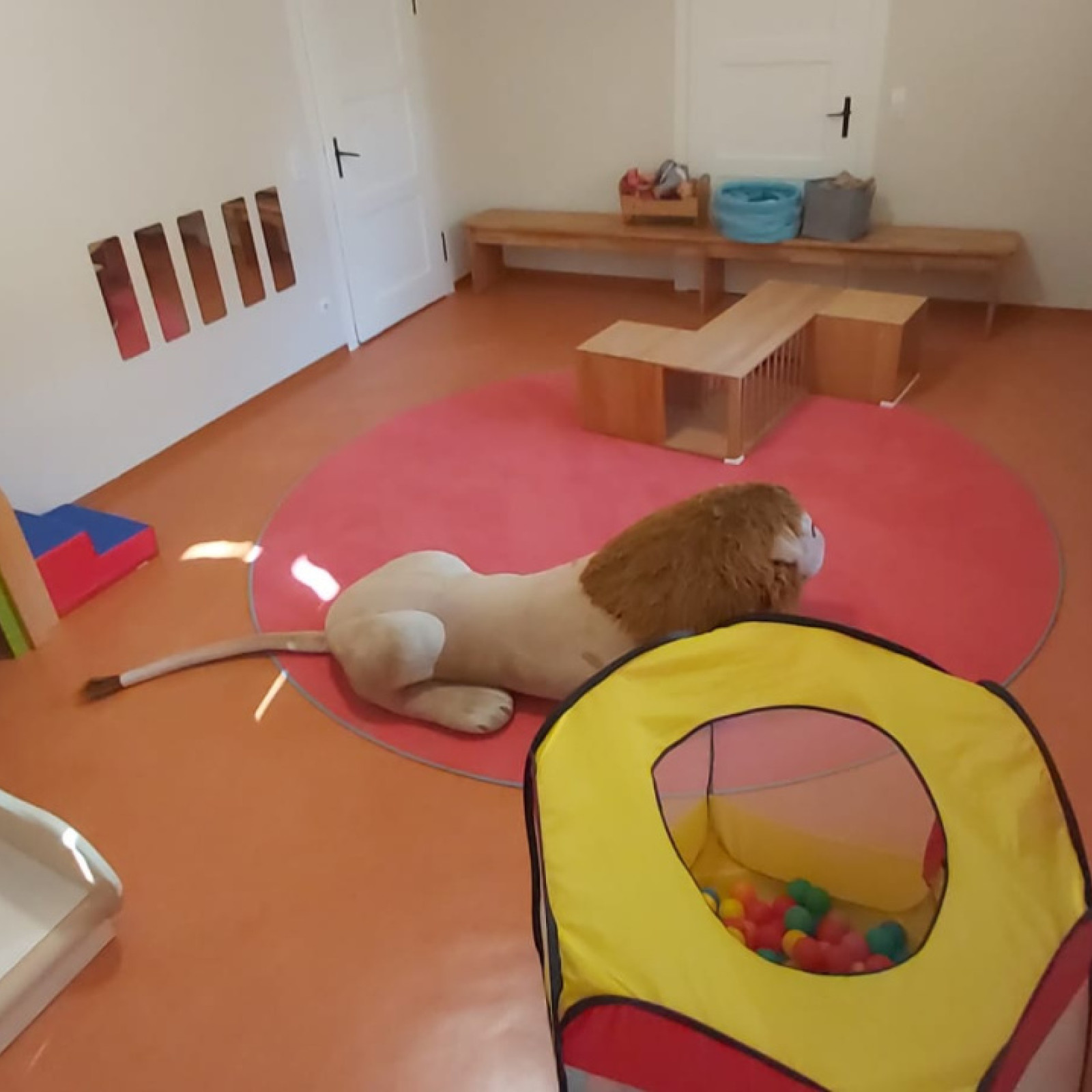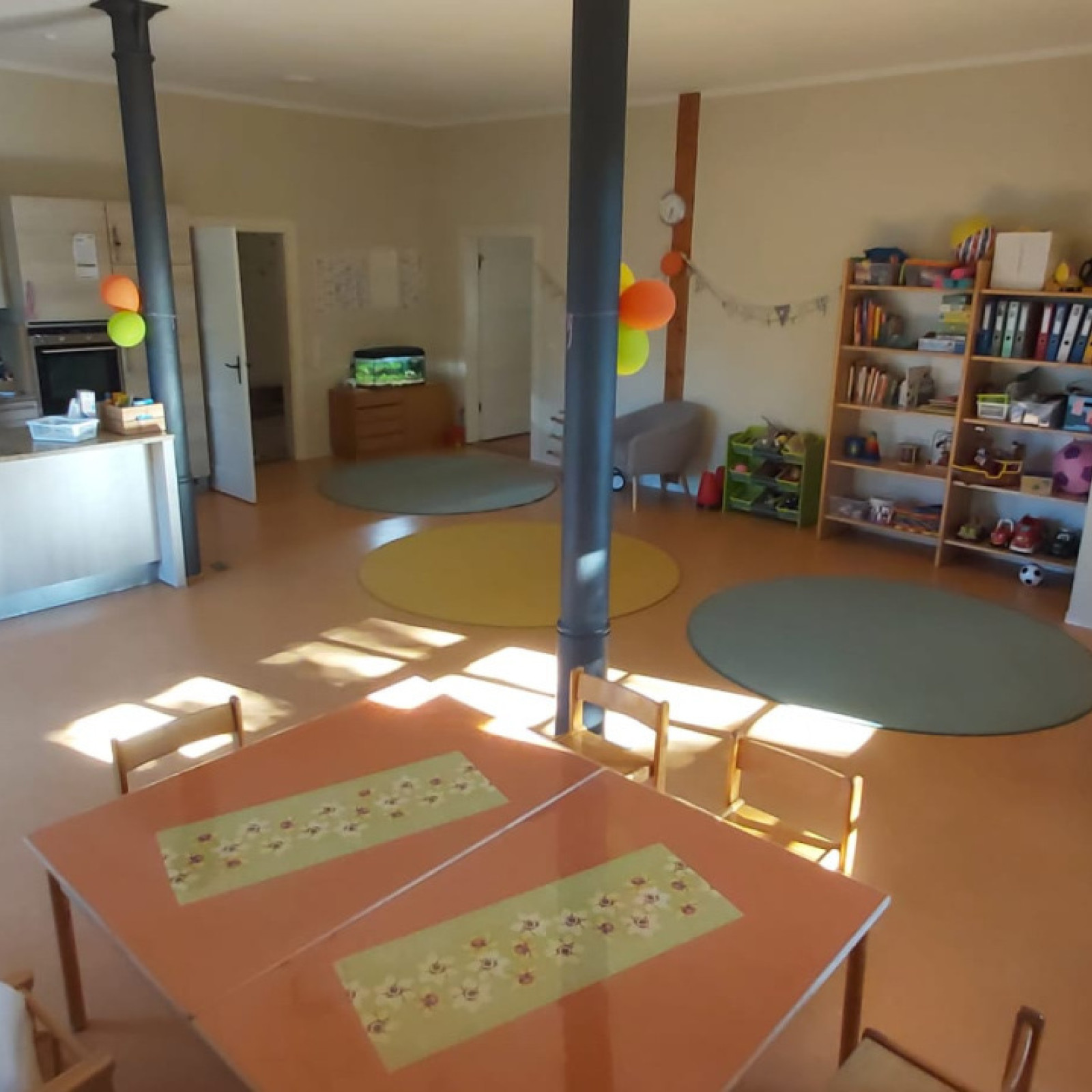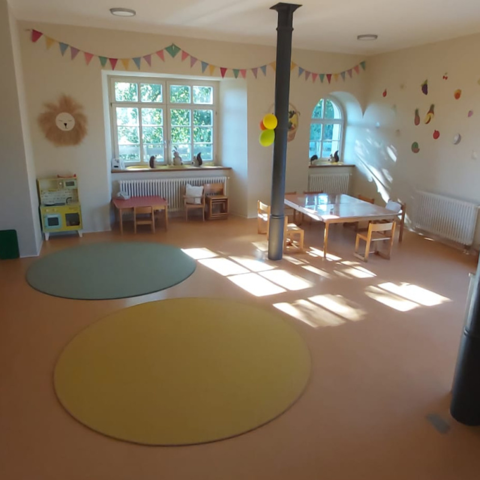 Die Räume sind sehr groß und hell und bieten den Kindern viel Platz zum Toben, Spielen und Schlafen. Es stehen 3 liebevoll eingerichtete Räume mit einer Fläche von insgesamt 200 Quadratmetern für vielfältige Entdeckungen bereit. Wir haben einen Gruppenraum in dem gegessen, gelesen und gespielt wird. Außerdem einen Bewegungsraum in dem sich die Kinder ausgiebig austoben können, sowie einen Schlafraum mit gemütlichen Bettchen, in denen die Kinder zur Ruhe kommen und ihren Mittagsschlaf halten.